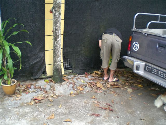 Picking the fallen leaves. Locals call them Ketapang leaves.
